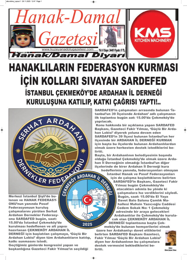 Merkezi İstanbul Şişli’de bulanan ve HANAK FEDERASYONU’nun yanında Posof Federasyonuun kuruluş çalışmalarını yürüten Serhat Ardahan Dernekler Federasyonu SARDAFED cumartesi günü saat: 15.00’da İstanbul Çekmeköy’de kurulması hedeflenen ve alt yapısı hazırlanan ÇEKMEKÖY ARDAHAN İL DERNEĞİ için başlatılan çalışmaya, ‘Güçlü Bir Ardahan Lobisi’ diyen tüm Ardahanlıların katılıp, katkı sunmasını istedi.
