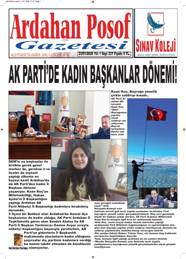 DEM’in eş başkanlar ile birlikte gerek genel merkez de, gerekse il ve ilçeler de siyaset yaptığı ülkenin en kuzeyi kenti Ardahan’da da AK Parti’den kadın İl Başkanı dönemi yaşanıyor. Kaan Koç’un Milletvekilliği, Hakan Aydın’ın İl Başkanlığını yaptığı Ardahan AK Parti Nöbetçi İl Başkanlığı kadınlara bırakılmış durumda.