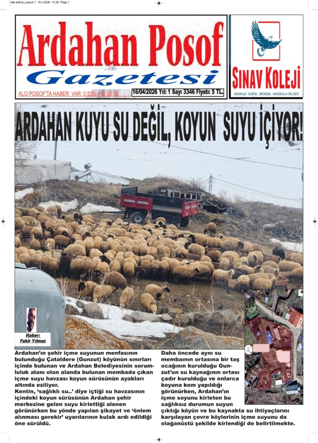 Kentin, ‘sağlıklı su..’ diye içtiği su havzasının içindeki koyun sürüsünün Ardahan şehir merkezine gelen suyu kirlettiği alenen görünürken bu yönde yapılan şikayet ve ‘önlem alınması gerekir’ uyarılarının kulak ardı edildiği öne sürüldü.