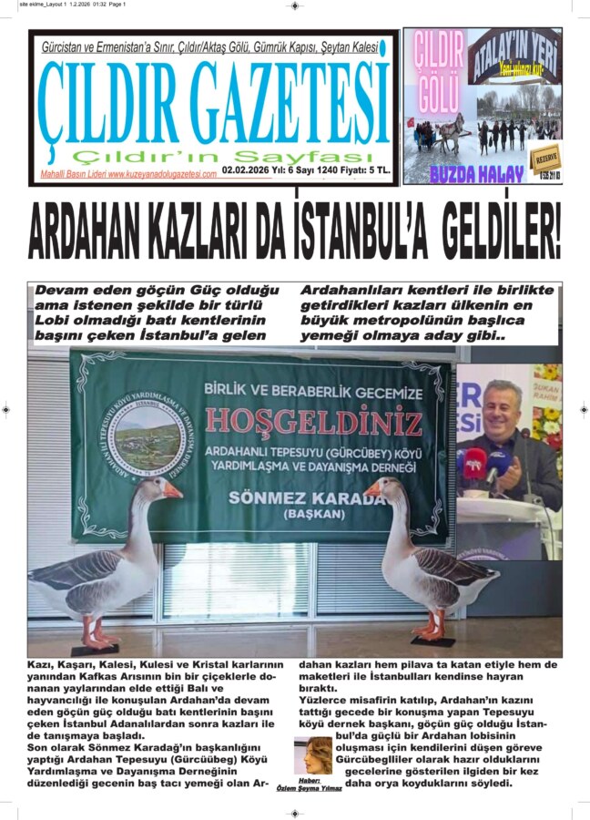 Kazı, Kaşarı, Kalesi, Kulesi ve Kristal karlarının yanından Kafkas Arısının bin bir çiçeklerle donanan yaylarından elde ettiği Balı ve hayvancılığı ile konuşulan Ardahan’da devam eden göçün güç olduğu batı kentlerinin başını çeken İstanbul Adanalılardan sonra kazları ile de tanışmaya başladı.