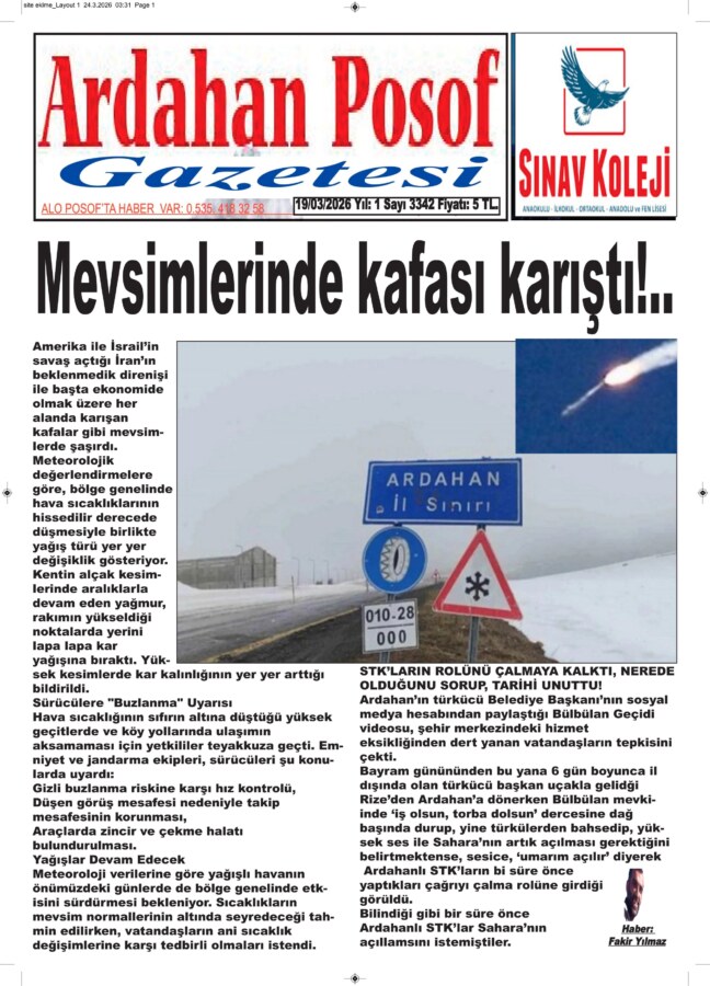 Bayram gününündin bu yana 6 gün boyunca il dışında olan türkücü başkan uçakla geldiği Rize’den Ardahan’a dönerken Bülbülan mevkiinde ‘iş olsun, torba dolsun’ dercesine dağ başında durup, yine türkülerden bahsedip, yüksek ses ile Sahara’nın artık açılması gerektiğini belirtmektense, sessizce, ‘umarım açılır’ diyerek Ardahanlı STK’ların bi süre önce yaptıkları çağrıyı çalma rolüne girdiği görüldü.