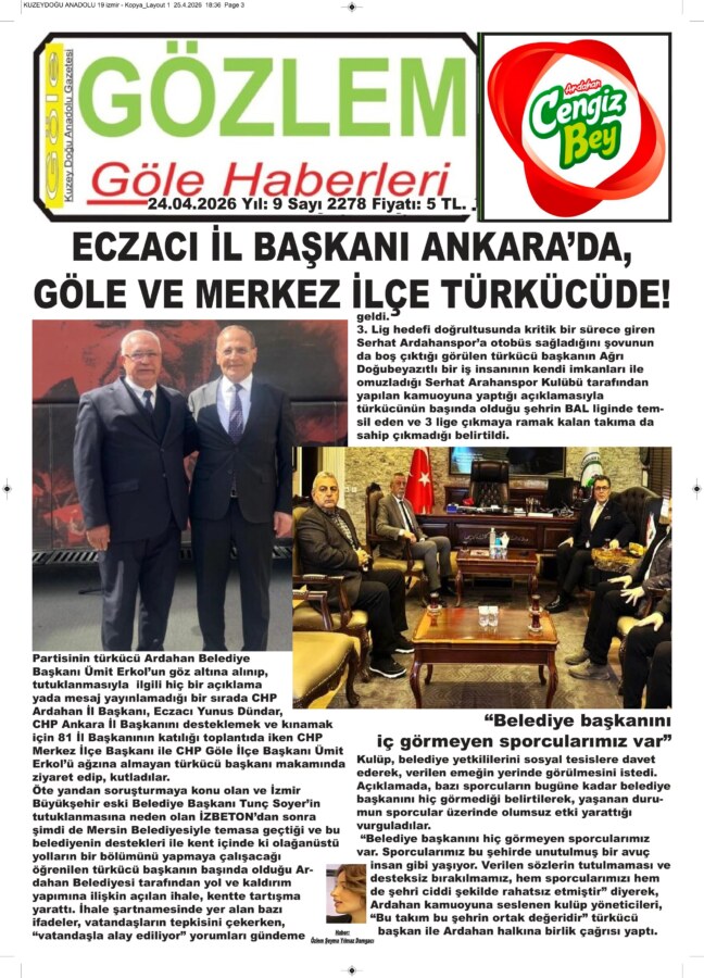 Geçtiğiminiz gün gittiği Damal’da katlılığı bir cenaze törenin ramazan olmasına rağmen açıkta, milletin içinde çay içtiği görüntülenen Ardahan’ın türkücü CHP’li, türkücü Belediye Başkanı belediyenin kentin sporuna katkı sunması için yasal ve zorunlu olan parayı Serhat Ardahanspor’a vermediği ileri sürüldü.