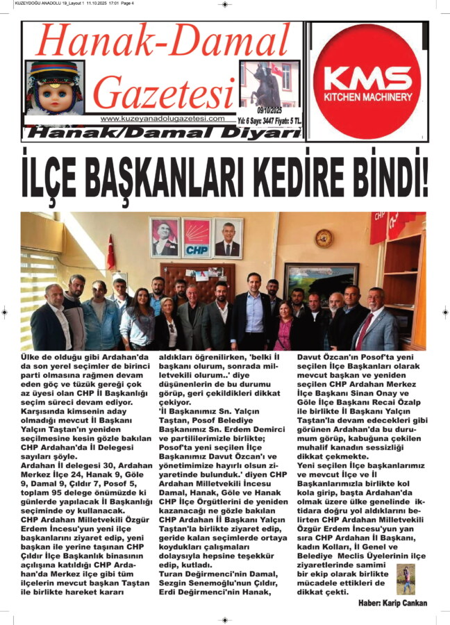 Turan Değirmenci’nin Damal, Sezgin Senemoğlu’nun Çıldır, Erdi Değirmenci’nin Hanak, Davut Özcan’ın Posof’ta yeni seçilen İlçe Başkanları olarak mevcut başkan ve yeniden seçilen CHP Ardahan Merkez İlçe Başkanı Sinan Onay ve Göle İlçe Başkanı Recai Özalp ile birlikte İl Başkanı Yalçın Taştan’la devam edecekleri gibi görünen Ardahan’da bu durumum görüp, kabuğuna çekilen muhalif kanadın sessizliği dikkat çekmekte.