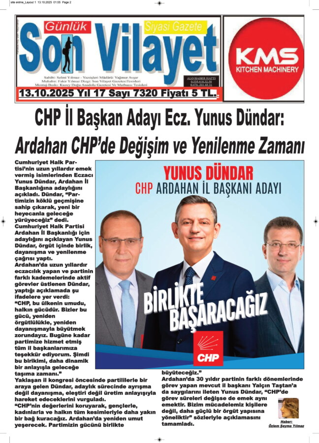İlçe Kongrelerini bitiren CHP Ardahan İl Başkanlığının 39. Olağan İl Kongresi 16 Ekim 2025 Perşembe günü saat 10.00’da Dursun Akçam Kültür Evi’nde gerçekleştirileceğini duyurması üzerine he dönemin adayı olan ama bir türlü kazanamayan Ecz. Yunus Dündar yine aday olduğun açıkladı.