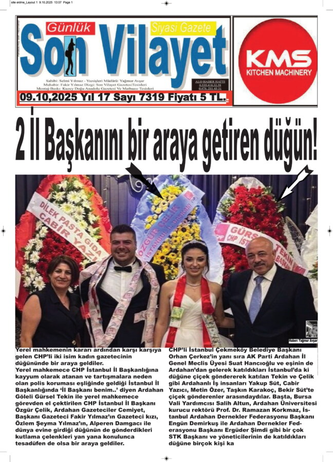 Yerel mahkemece CHP İstanbul İl Başkanlığına kayyum olarak atanan ve tartışmalara neden olan polis koruması eşliğinde geldiği İstanbul İl Başkanlığında ‘İl Başkanı benim..’ diyen Ardahan Göleli Gürsel Tekin ile yerel mahkemece görevden el çektirilen CHP İstanbul İl Başkanı Özgür Çelik, Ardahan Gazeteciler Cemiyeti, Başkanı Gazeteci Fakir Yılmaz’ın Gazeteci kızı, Özlem Şeyma Yılmaz’ın, Alperen Damgacı ile dünya evine girdiği düğünün de gönderdikleri kutlama çelenkleri yan yana konulunca tesadüfen de olsa bir araya geldiler.