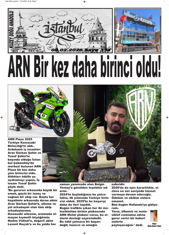 Ardahanlı iş insanları Aras Gürkan Şahin ve Yusuf Şahin’in başında olduğu İstanbul Çekmeköy’de merkezi bulunan ARN Plaza bir kez daha yılın birincisi oldu.