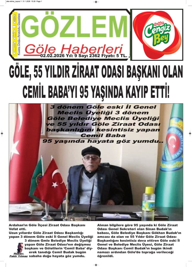 Uzun yıllardır Göle Ziraat Odası Başkanlığı yapan 3 dönem Göle eski İl Genel Meclis Üyeliği 3 dönem Gmle Belediye Meclis Üyeliği yapan Göle Ziraat Odası’nın değişmez başkanı ve Gölelilerin ‘Cemil Baba’ diyerek tanıdığı Cemil Budak bugün sabaha doğu hayata göz yumdu.