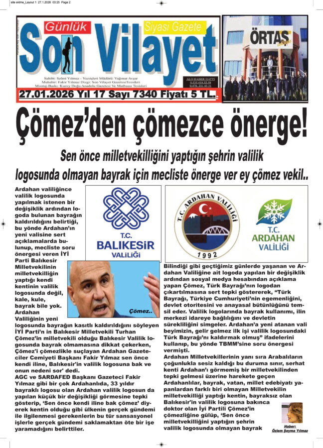 Bilindiği gibi geçtiğimiz günlerde yaşanan ve Ardahan Valiliğine ait logoda yapılan bir değişiklik ardından sosyal medya hesabından açıklama yapan Çömez, Türk Bayrağı’nın logodan çıkartılmasına sert tepki göstererek, “Türk Bayrağı, Türkiye Cumhuriyeti’nin egemenliğini, devlet otoritesini ve anayasal bütünlüğünü temsil eder. Valilik logolarında bayrak kullanımı, ilin merkezi idareye bağlılığını ve devletin sürekliliğini simgeler. Ardahan’a yeni atanan vali beyimizin, gelir gelmez ilk işi valilik logosundaki Türk Bayrağı’nı kaldırmak olmuş” ifadelerini kullanıp, bu yönde TBMM’sine soru önergesi vermişti.