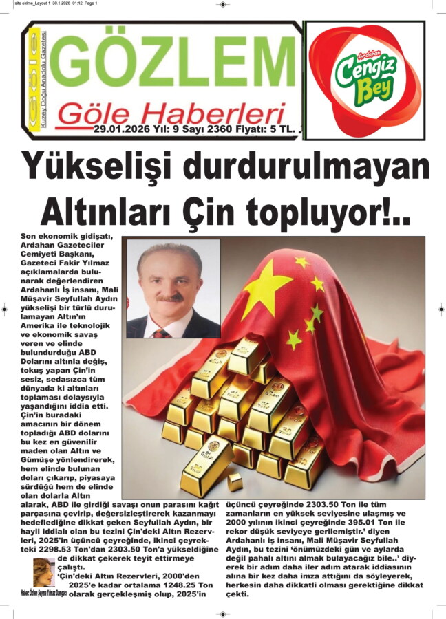 ‘Çin’deki Altın Rezervleri, 2000’den 2025’e kadar ortalama 1248.25 Ton olarak gerçekleşmiş olup, 2025’in üçüncü çeyreğinde 2303.50 Ton ile tüm zamanların en yüksek seviyesine ulaşmış ve 2000 yılının ikinci çeyreğinde 395.01 Ton ile rekor düşük seviyeye gerilemiştir.’ diyen Ardahanlı iş insanı, Mali Müşavir Seyfullah Aydın, bu tezini ‘önümüzdeki gün ve aylarda değil pahalı altını almak bulayacağız bile..’ diyerek bir adım daha iler adım atarak iddiasının alına bir kez daha imza attığını da söyleyerek, herkesin daha dikkatli olması gerektiğine dikkat çekti.