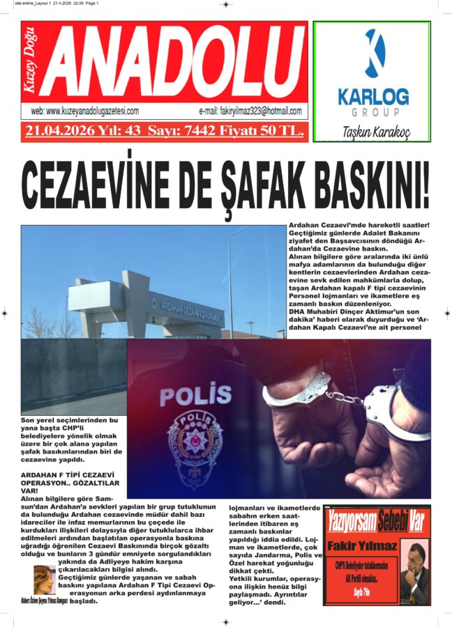 DHA Muhabiri Dinçer Aktimur’un son dakika’ haberi olarak duyurduğu ve ‘Ardahan Kapalı Cezaevi’ne ait personel lojmanları ve ikametlerde sabahın erken saatlerinden itibaren eş zamanlı baskınlar yapıldığı iddia edildi. Lojman ve ikametlerde, çok sayıda Jandarma, Polis ve Özel harekat yoğunluğu dikkat çekti.