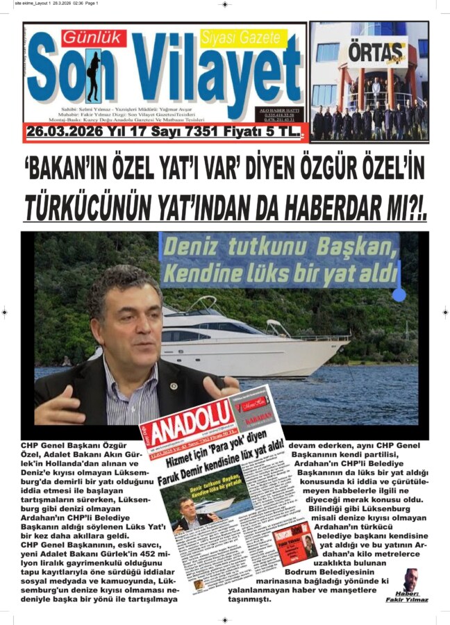 CHP Genel Başkanının, eski savcı, yeni Adalet Bakanı Gürlek’in 452 milyon liralık gayrimenkulü olduğunu tapu kayıtlarıyla öne sürdüğü iddialar sosyal medyada ve kamuoyunda, Lüksemburg’un denize kıyısı olmaması nedeniyle başka bir yönü ile tartışılmaya devam ederken, aynı CHP Genel Başkanının kendi partilisi, Ardahan’ın CHP’li Belediye Başkanının da lüks bir yat aldığı konusunda ki iddia ve çürütülemeyen habbelerle ilgili ne diyeceği merak konusu oldu.