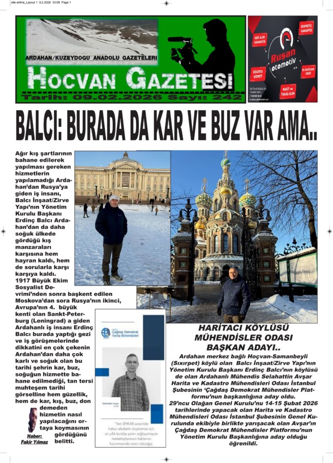 Ağır kış şartlarının bahane edilerek yapılması gereken hizmetlerin yapılamadığı Ardahan’dan Rusya’ya giden iş insanı, Balcı İnşaat/Zirve Yapı’nın Yönetim Kurulu Başkanı Erdinç Balcı Ardahan’dan da daha soğuk ülkede gördüğü kış manzaraları karşısına hem hayran kaldı, hem de sorularla karşı karşıya kaldı.