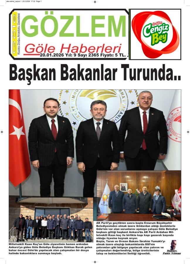 Milletvekili Kaan Koç’un Göle ziyaretinin hemen ardından Ankara’ya giden Göle Belediye Başkanı Gökhan Burak gelen bahar öncesi Göle’de yapılacak olan çalışmaları bir dosya halinde bakanlıklara sunmaya başladı.