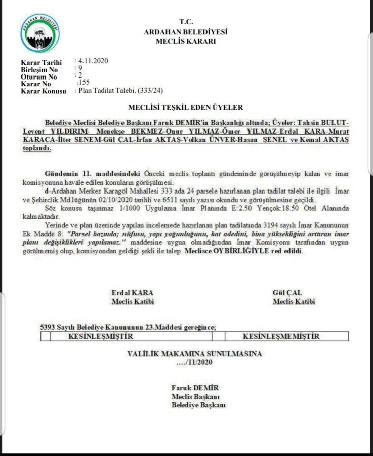 Ardahan Belediyesi’ndeki Yolsuzluk ve Usulsüzlükler Hakkında;