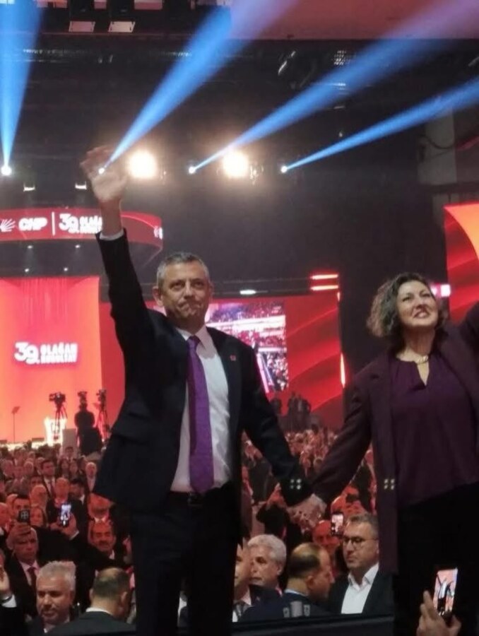 İmamoğlu’nun tutuklanmasından bu yana İmamoğlu’nun eşiyle sıkça görünen CHP Genel Başkanı Özgür Özel’in eşi Didem Özel ile birlikte CHP’nin 39. Olağan Kurultay’ında sahneye çıktığı görüldü.