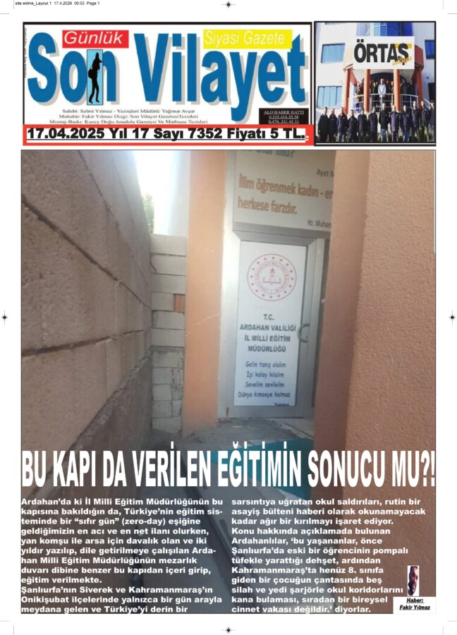 Ardahan’da ki İl Milli Eğitim Müdürlüğünün bu kapısına bakıldığın da, Türkiye’nin eğitim sisteminde bir “sıfır gün” (zero-day) eşiğine geldiğimizin en acı ve en net ilanı olurken, yan komşu ile arsa için davalık olan ve iki yıldır yazılıp, dile getirilmeye çalışılan Ardahan Milli Eğitim Müdürlüğünün mezarlık duvarı dibine benzer bu kapıdan içeri girip, eğitim verilmekte.