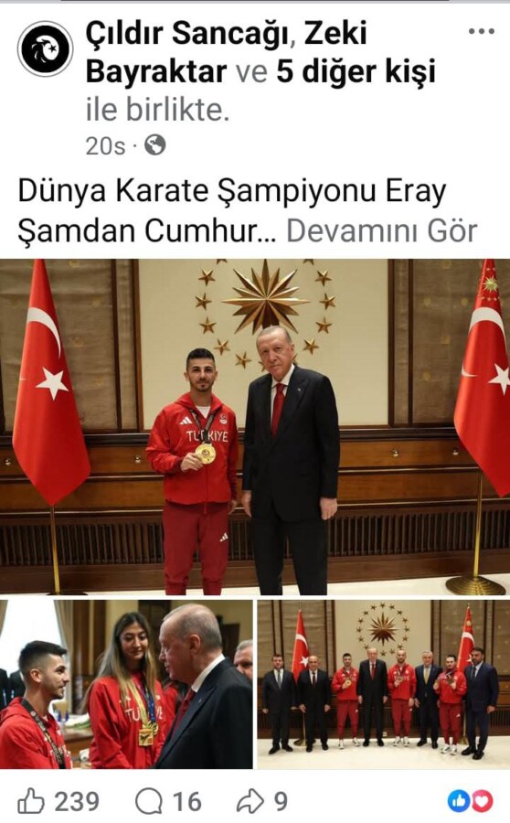Başta çıldırsancağı adlı sanal sayfa olmak üzere Çıldır’a yönelik haber ve paylaşımlar yapan sana sayfa ve haber sitelerinin Çıldırlı olan Eray Şamdalı’nın dan bol bol övgüler yağdırırlarken Şamdalı’nın da bağlı olduğu ve başkanı Çıldırlı olan Türkiye Karate Federasyoncudan ve Başkanı Ercüment Taşdemir’den bahsetmeyip Taşdemir’i göremezlikte gelmeleri dikkat çekti.