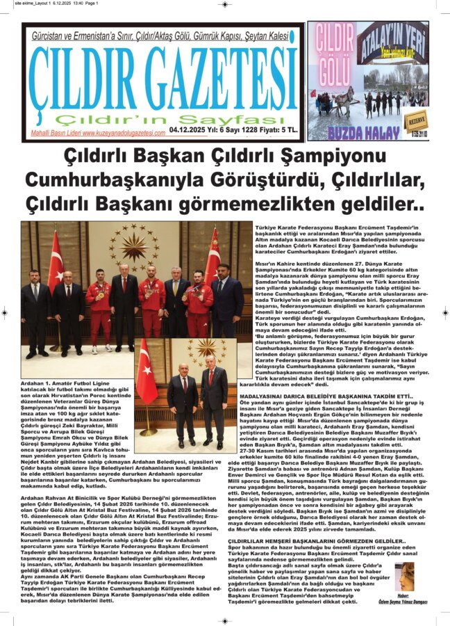 Öte yandan aynı günler içinde İstanbul Sancaktepe’de ki bir grup iş insanı ile Mısır’a geziye giden Sancaktepe İş İnsanları Derneği Başkanı Ardahan Hoçvanlı Ergün Gökçe’nin bilinmeyen bir nedenle hayatını kayıp ettiği  Mısır’da düzenlenen şampiyonada dünya şampiyonu olan milli karateci, Ardahanlı Eray Şamdan, kendisni yetiştiren Darıca Belediyesinin Belediye Başkanı Muzaffer Bıyık’ı evinde ziyaret etti. Geçirdiği operasyon nedeniyle evinde istirahat eden Başkan Bıyık’a, Şamdan altın madalyasını takdim etti.