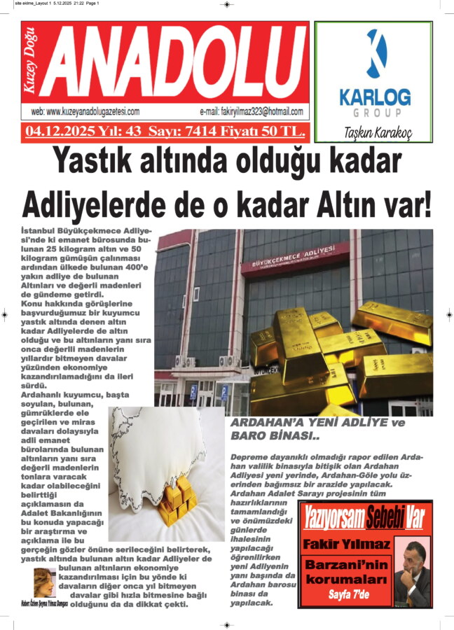 Ardahanlı kuyumcu, başta soyulan, bulunan, gümrüklerde ele geçirilen ve miras davaları dolaysıyla adli emanet bürolarında bulunan altınların yanı sıra değerli madenlerin tonlara varacak kadar olabileceğini belirttiği açıklamasın da Adalet Bakanlığının bu konuda yapacağı bir araştırma ve açıklama ile bu gerçeğin gözler önüne serileceğini belirterek, yastık altında bulunan altın kadar Adliyeler de bulunan altınların ekonomiye kazandırılması için bu yönde ki davaların diğer onca yıl bitmeyen davalar gibi hızla bitmesine bağlı olduğunu da da dikkat çekti.
