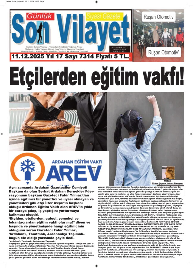 Ve; ‘Siz önce şu eğitime bir kapı açın hele..’ diyen gazetemizin manşetiyle birlikte 81 KENT İÇİN DE SONLARDA OLAN ARDAHAN’I KURTARAMAYAN EĞİTİM VAKFI BİR KEZ DAHA GECE DÜZENLEYİP, YERLERDE TOPLANAN DÖNERLERİ SATIP, ZENGİN OLUP, SONRADAN DOLANDIRCI ÇIKANLARI YİNE Mİ ALKIŞLAYACAK?!.. Gazeteci Fakir Yılmaz yazdı..’ notunu düşüp adeta ‘bu içi boşlara kendini yormaya değmez dercesine ‘devamı yarın diyordum..