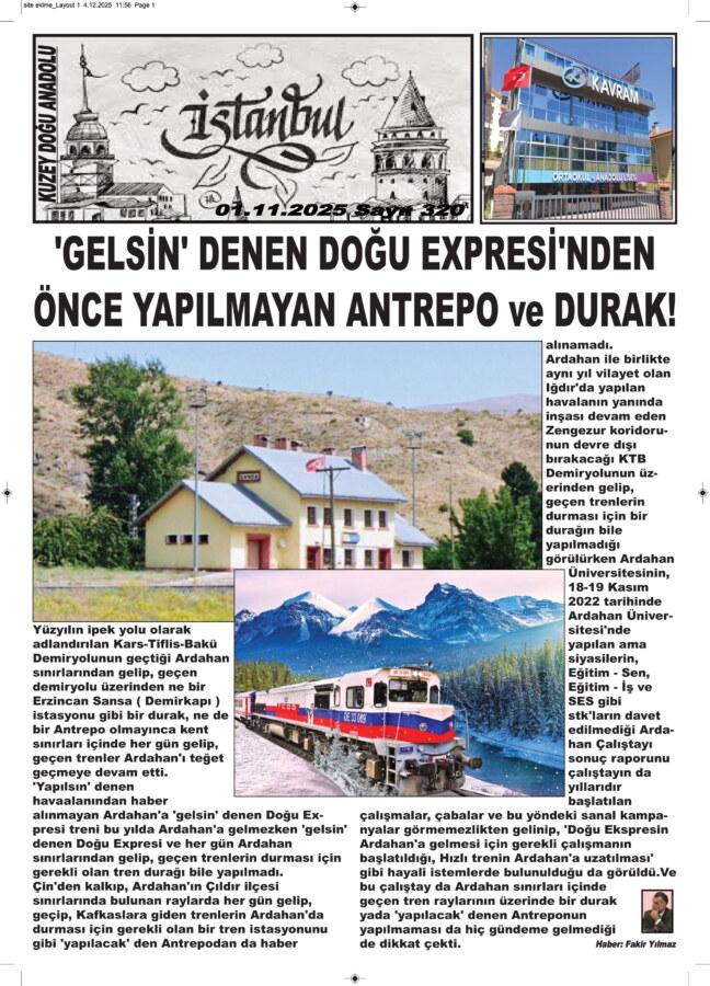 ‘Yapılsın’ denen havaalanından haber alınmayan Ardahan’a ‘gelsin’ denen Doğu Expresi treni bu yılda Ardahan’a gelmezken ‘gelsin’ denen Doğu Expresi ve her gün Ardahan sınırlarından gelip, geçen trenlerin durması için gerekli olan tren durağı bile yapılmadı.