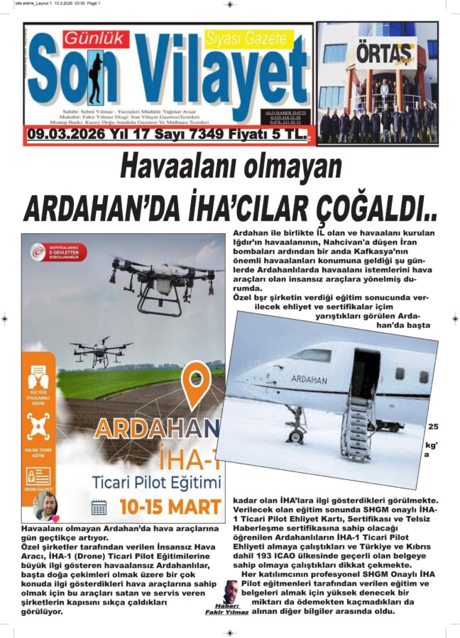 Amerika’nın Avrupa ülkelerini es geçip, İsrail ile birlikte savaş uçakları eğleğinde İran’a hava saldırıları ile başlattığı şu günlerde, havaalansız Ardahanlıların gözü de hava da. Havaalanı olmayan Ardahan’da hava araçlarına gün geçtikçe artıyor.