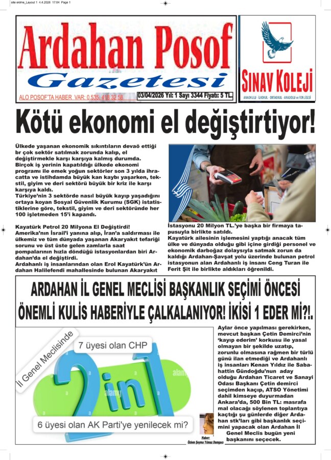 Ardahanlı iş insanlarından olan Erol Kayatürk’ün Ardahan Halilefendi mahallesinde bulunan Akaryakıt İstasyonu 20 Milyon TL.’ye başka bir firmaya tapusuyla birlikte satıldı.