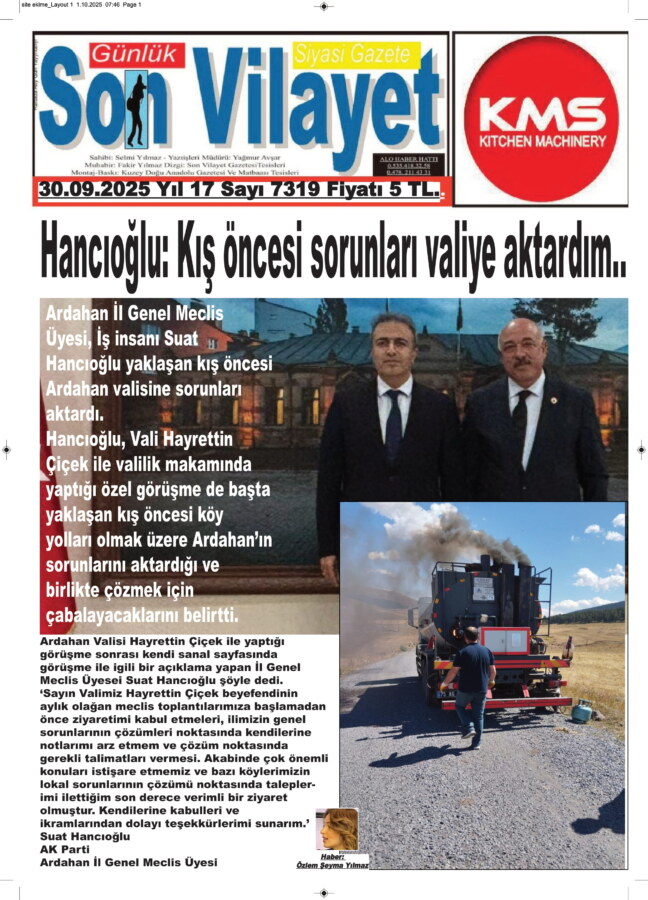 Ardahan Valisi Hayrettin Çiçek ile yaptığı görüşme sonrası kendi sanal sayfasında görüşme ile gili bir açıklama yapan İl Genel meclis Üyesi Suat Hancıoğlu şöyle dedi.