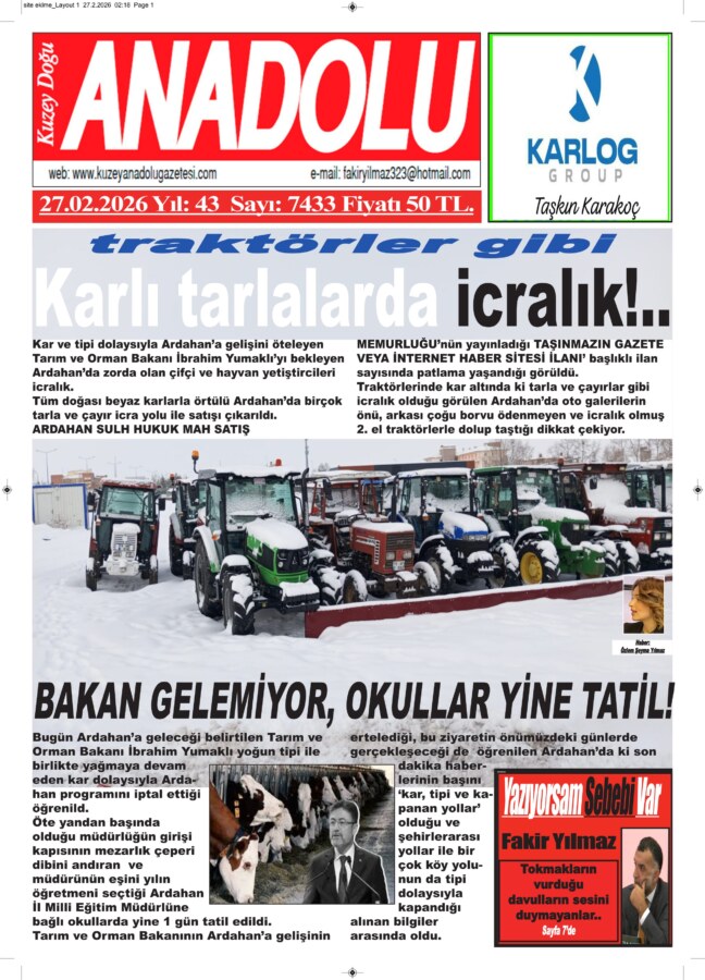 Tarım ve Orman Bakanı İbrahim Yumaklı‘nın geldiği Ardahan’da birçok tarla ve çayırında icralık olduğu en son yayınlanan aşağıda ki icra yolu ile satışa sunulan ilanla bir kez daha görüldü.
