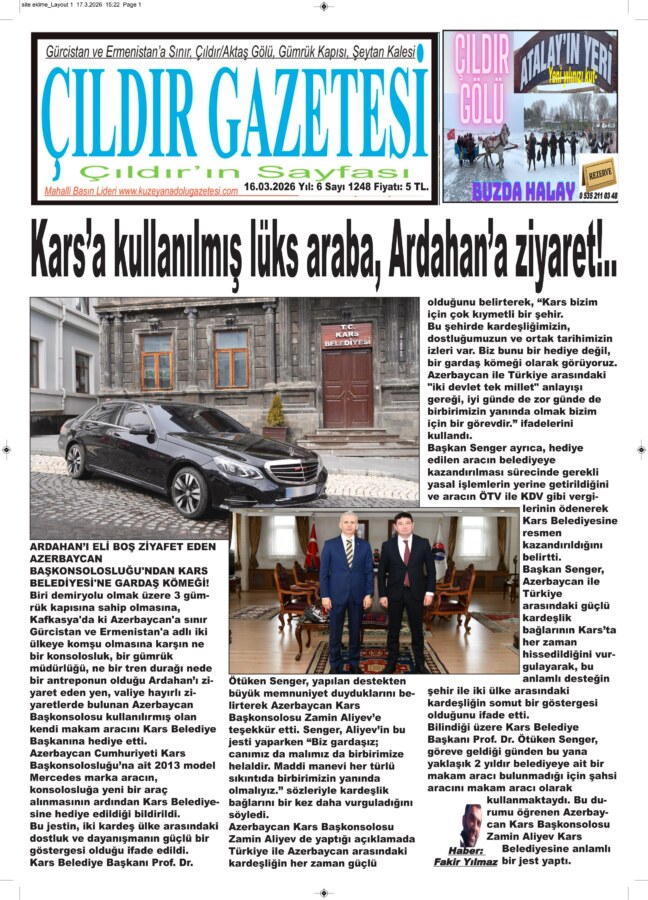 Biri demiryolu olmak üzere 3 gümrük kapısına sahip olmasına, Kafkasya’da ki Azerbaycan’a sınır Gürcistan ve Ermenistan’a adlı iki ülkeye komşu olmasına karşın ne bir konsolosluk, bir gümrük müdürlüğü, ne bir tren durağı nede bir antreponun olduğu Ardahan’ı ziyaret eden yen, valiye hayırlı ziyaretlerde bulunan Azerbaycan Başkonsolosu kullanılırmış olan kendi makam aracını Kars Belediye Başkanına hediye etti.