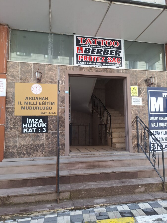 Gazetemizin sık sık gündeme getirdiği İl Millî Eğitim Müdürlüğünün giriş kapısını bulunduğu aynı binanın başka yerine taşıdığı görülürken, İl Milli Eğitim Müdürlüğü levhasının aynı binada bulunan berber levhasının gölgesinde kalan bu değişikliğin binanın plan ve projesine uygun olup olmadığı ve belediye de izin alınıp, alınmadığı merak edilirken 5 katlı binada yeni açılan kapı asansörsüz de kaldı.