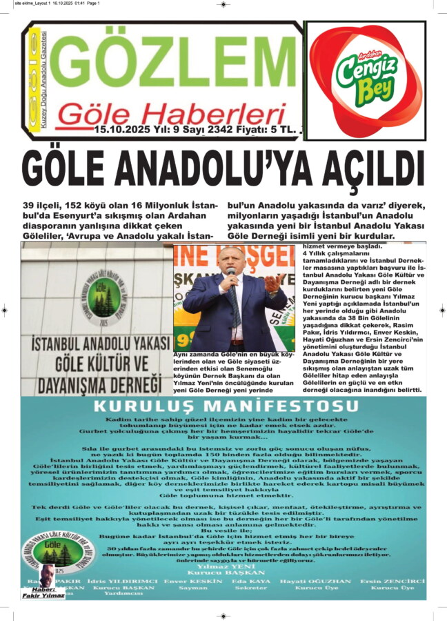 Bilindiği gibi Göle Dernekler Federasyonunun normal kongresin de yaşananlar arından federasyon uzunca süre tartışılmış, adliye koridorlarına düşmüştü. Yapılan onca itiraz ve adliye koridorlarına düşen tartışmalar ardından yeniden kongreye gidip, Eren Küplei’yi 3. kez başkanlığa seçen Göle Dernekler Federasyon ile araları olmadığı ileri sürülen Göle Derneğinin barıştıkları ve önümüzde ki günlerde bir araya gelip, bu yönde kamuoyuna bir açıklama yapacakları da öğrenilirken Göle Derneğine rakip olarak kurulduğu ileri sürülen ve Başkanlığını Yılmaz Yeni’nin üstlendiği İstanbul Anadolu Yakası Göle Derneğinin yönetiminde yaşanan istifalar ile kapanma aşamasına geldiği de alınan diğer bilgiler arasında oldu.