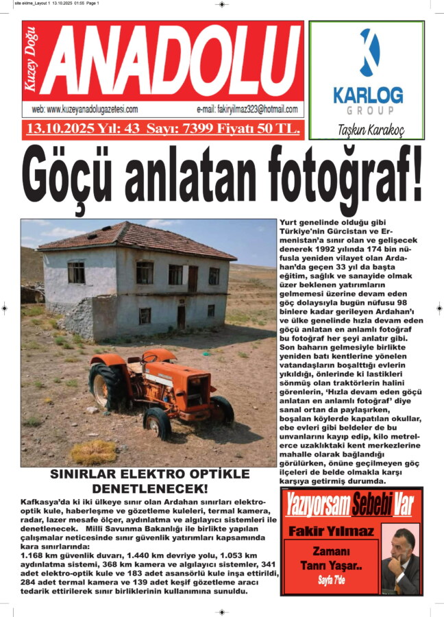 Yurt genelinde olduğu gibi Türkiye’nin Gürcistan ve Ermenistan’a sınır olan ve gelişecek denerek 1992 yılında 174 bin nüfusla yeniden vilayet olan Ardahan’da geçen 33 yıl da başta eğitim, sağlık ve sanayide olmak üzer beklenen yatırımların gelmemesi üzerine devam eden göç dolaysıyla bugün nüfusu 98 binlere kadar gerileyen Ardahan’ı ve ülke genelinde hızla devam eden göçü anlatan en anlamlı fotoğraf bu fotoğraf her şeyi anlatır gibi.