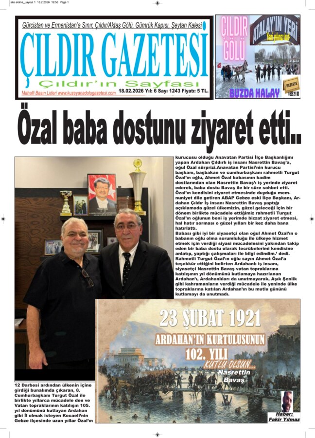 12 Darbesi ardından ülkenin içine girdiği bunalımda çıkaran, 8. Cumhurbaşkanı Turgut Özal ile birlikte yıllarca mücadele den ve Vatan topraklarının katılışın 105. yıl dönümünü kutlayan Ardahan gibi İl olmak isteyen Kocaeli’nin Gebze ilçesinde uzun yıllar Özal’ın kurucusu olduğu Anavatan Partisi İlçe Başkanlığını yapan Ardahan Çıldırlı iş insanı Nasrettin Bavaş’a, oğul Özal sürprizi.