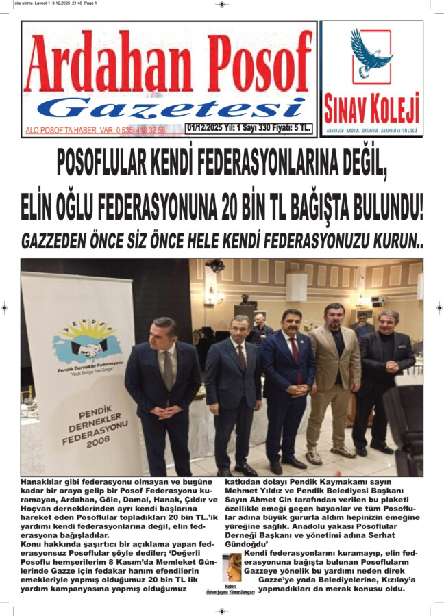Kendi federasyonlarını kuramayıp, elin federasyonuna bağışta bulunan Posofluların Gazze’ye yönelik bu yardımı neden direk Gazze’ye yada Belediyelerine, Kızılay’a veya niye Ardahan Federasyonları aracılığı ile bu yar yapmadıkları da merak konusu oldu.