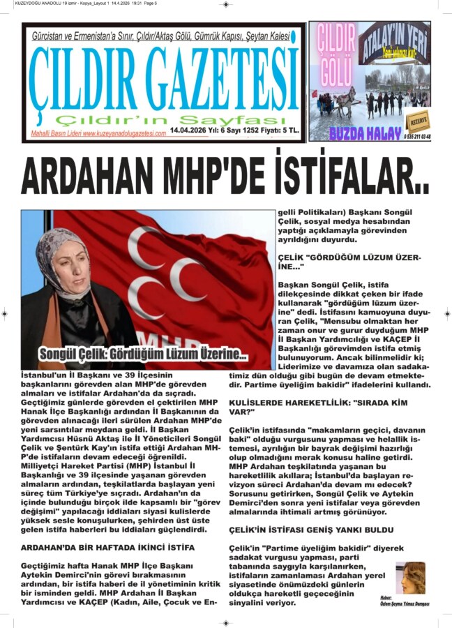 Çelik’in istifasında “makamların geçici, davanın baki” olduğu vurgusunu yapması ve helallik istemesi, ayrılığın bir bayrak değişimi hazırlığı olup olmadığını merak konusu haline getirdi. MHP Ardahan teşkilatında yaşanan bu hareketlilik akıllara; İstanbul’da başlayan revizyon süreci Ardahan’da devam mı edecek? Sorusunu getirirken, Songül Çelik ve Aytekin Demirci’den sonra yeni istifalar veya görevden almalarında ihtimali artmış görünüyor.