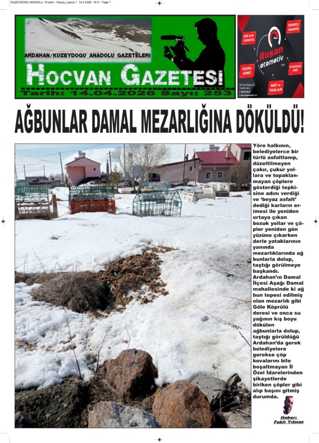 Ardahan’ın Damal İlçesi Aşağı Damal mahallesinde ki ağ bun tepesi edilmiş olan mezarlık gibi Göle Köprülü deresi ve onca su yağının kış boyu dökülen ağbunlarla dolup, taştığı görüldüğü Ardahan’da gerek belediyelere gerekse çöp kovalarını bile boşaltmayan İl Özel İdarelerinden şikayetlerde biriken çöpler gibi alıp başını gitmiş durumda.