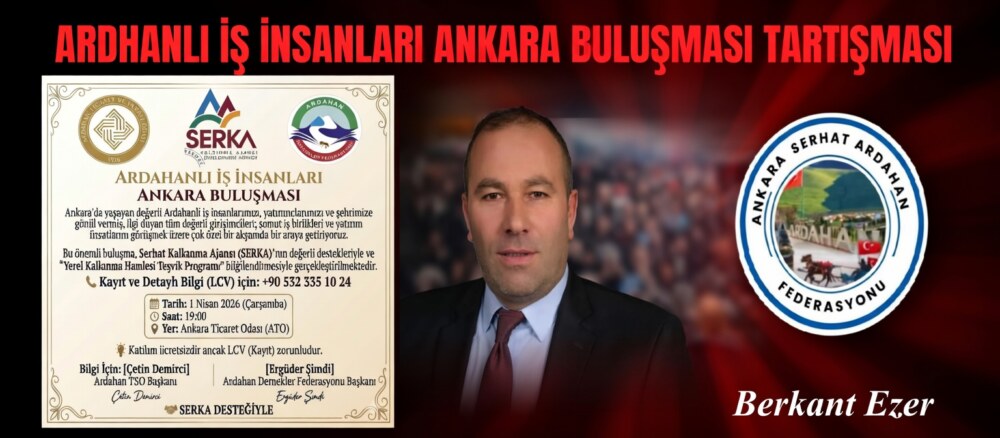 1 Nisan 2026 tarihinde Ankara’da, Ankara Ardahan Dernekler Federasyonu ve Ardahan ticaret ve sanayi odasını başkanlığının ( başkanının) öncülüğünde düzenlenecek olan iş insanları buluşmasını önemle takip etmekteyiz.!!! tesadüfen gördük…Ancak böylesine önemli bir organizasyonda, Ardahan Ticaret ve Sanayi Odası’nın meclis üyelerinin ve bizzat Ardahan’da üretim yapan, istihdam sağlayan iş insanlarının davet edilmemiş olması büyük bir eksiklik ve kabul edilemez bir durumdur.
