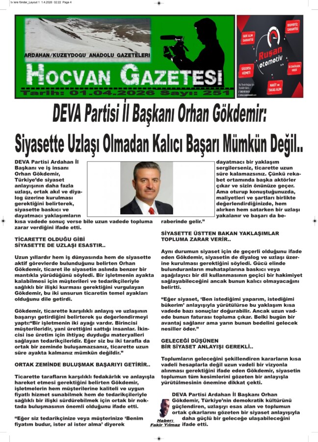 Unutulmamalıdır ki Ardahan’ı en iyi bilen, sorunlarını en yakından yaşayan ve çözüm üretme iradesini taşıyanlar; o topraklarda yaşayan, üreten ve istihdam sağlayan insanlardır. Bu kesimin dışlandığı hiçbir platform, Ardahan adına kapsayıcı ve sürdürülebilir sonuçlar ortaya koyamaz.