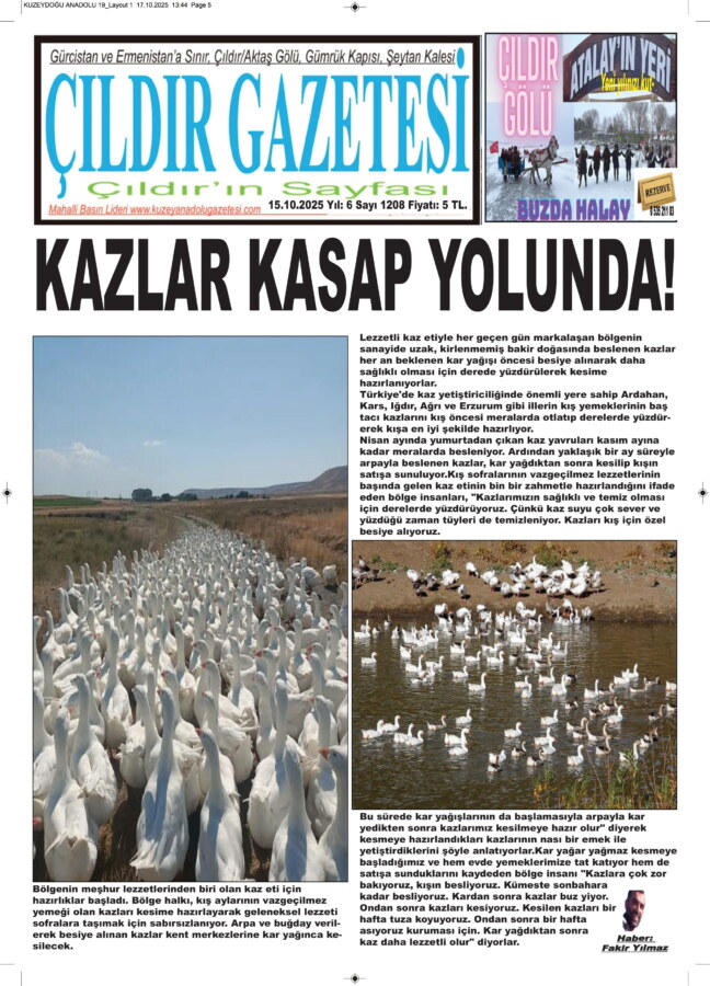 Türkiye’de kaz yetiştiriciliğinde önemli yere sahip Ardahan, Kars, Iğdır, Ağrı ve Erzurum gibi illerin kış yemeklerinin baş tacı kazlarını kış öncesi meralarda otlatıp derelerde yüzdürerek kışa en iyi şekilde hazırlıyor.