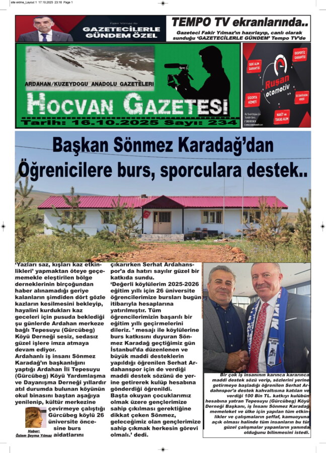 ‘Değerli köylülerim 2025-2026 eğitim yıllı için 26 üniversite öğrencilerimize bursları bugün itibarıyla hesaplarına yatırılmıştır. Tüm öğrencilerimizin başarılı bir eğitim yıllı geçirmelerini dileriz. ’ mesajı ile köylülerine burs katkısını duyuran Sönmez Karadağ geçtiğimiz gün İstanbul’da düzenlenen ve büyük maddi desteklerin yapıldığı öğrenilen Serhat Ardahanspor için de verdiği maddi destek sözünü de yerine getirerek kulüp hesabına gönderdiği öğrenildi.