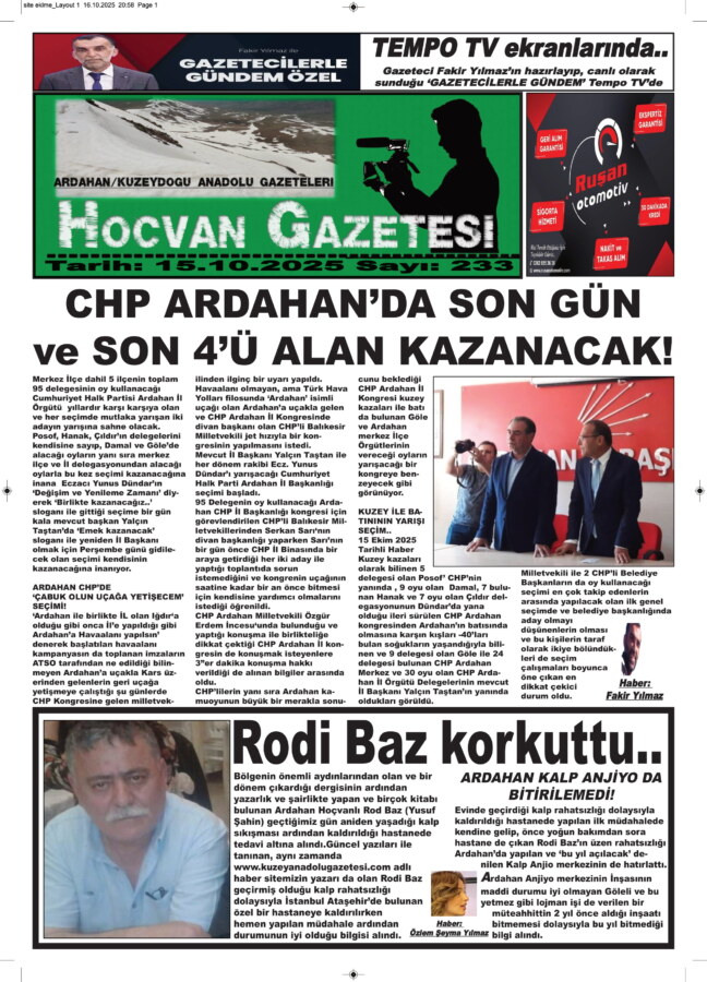 Bölgenin önemli aydınlarından olan ve bir dönem çıkardığı dergisinin ardından yazarlık ve şairlikte yapan ve birçok kitabı bulunan Ardahan Hoçvanlı Rod Baz (Yusuf Şahin) geçtiğimiz gün aniden yaşadığı kalp sıkışması ardından kaldırıldığı hastanede tedavi altına alındı.