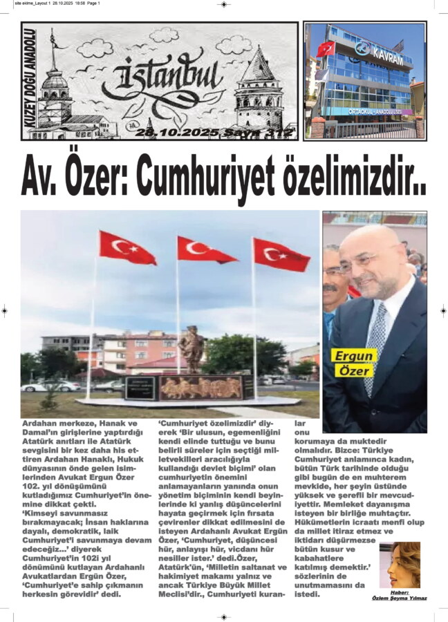 ‘Cumhuriyet özelimizdir’ diyerek ‘Bir ulusun, egemenliğini kendi elinde tuttuğu ve bunu belirli süreler için seçtiği milletvekilleri aracılığıyla kullandığı devlet biçimi’ olan cumhuriyetin önemini anlamayanların yanında onun yönetim biçiminin kendi beyinlerinde ki yanlış düşüncelerini hayata geçirmek için fırsata çevirenler dikkat edilmesini de isteyen Ardahanlı Avukat Ergün Özer, ‘Cumhuriyet, düşüncesi hür, anlayışı hür, vicdanı hür nesiller ister.’ dedi.