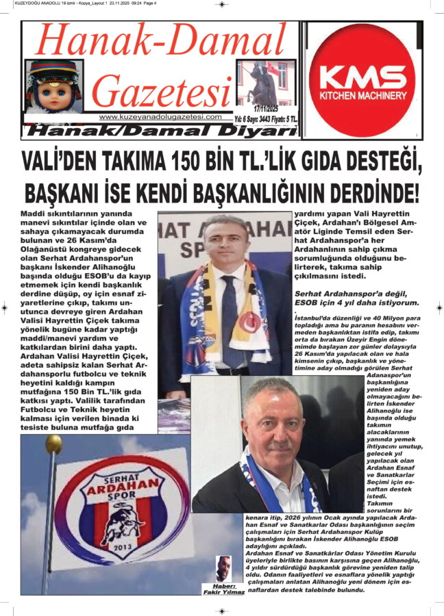 Öte yandan ‘söz verdiler, para vermediler’ diye suçlanan iş insanlarının verdikleri sözlerini yerine getirdiklerini başta biz gazetecilere attıkları dekontlarla olmak üzere kanıtlayıp, takım yöneticilerinin, ‘vermediler’ diyenleri çürütmeleri üzerine takımın sanal sayfasında adeta ‘Aaaa vermişler ya..’ dercesine tek tek teşekkür mesajları yayınladığı görülen Serhat Ardahanspor’un ikinci beklenmedik şansı Ardahanlı Vali Ozan Balcı’nın hem vali hem de Kayyum olduğu Van’dan geldi.