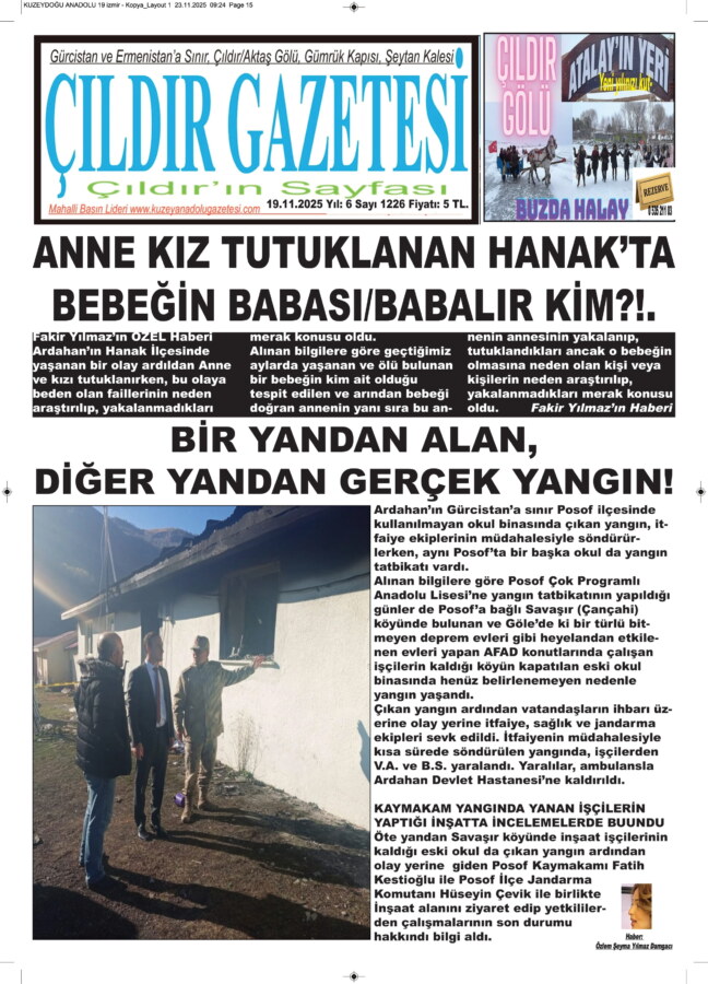 Alınan bilgilere göre Posof Çok Programlı Anadolu Lisesi‘ne yangın tatbikatının yapıldığı günler de Posof’a bağlı Savaşır (Çançahi) köyünde bulunan ve Göle’de ki bir türlü bitmeyen deprem evleri gibi heyelandan etkilenen evleri yapan AFAD konutlarında çalışan işçilerin kaldığı köyün kapatılan eski okul binasında henüz belirlenemeyen nedenle yangın yaşandı.