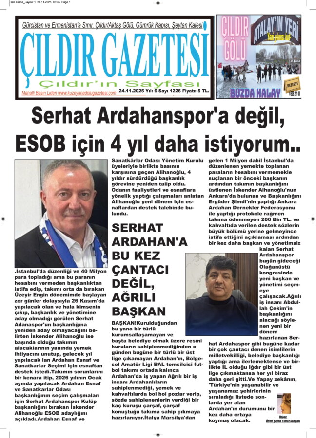 Takımın sorunlarını bir kenara itip, 2026 yılının Ocak ayında yapılacak Ardahan Esnaf ve Sanatkarlar Odası başkanlığının seçim çalışmaları için Serhat Ardahanspor Kulüp başkanlığını bırakan İskender Alihanoğlu ESOB adaylığını açıkladı.