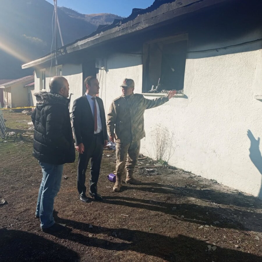 Öte yandan Savaşır köyünde inşaat işçilerinin kaldığı eski okul da çıkan yangın ardından olay yerine giden Posof Kaymakamı Fatih Kestioğlu ile Posof İlçe Jandarma Komutanı Hüseyin Çevik ile birlikte İnşaat alanını ziyaret edip yetkililerden çalışmalarının son durumu hakkındı bilgi aldı.