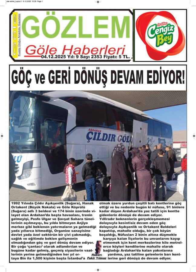 Yıllardır bekinenlerin gerçekleşmemesi dolaysıyla kesintisiz devam eden göç dolaysıyla Aşıkşenlik ve Ortakent Beldeleri kapatılıp, mahalle olduğu, bir çok köyün boşaldığı, Nüfusları 2 binin altına düşmekle karşıya kalan İlçelerin bu unvanlarını kayıp etmemek için kent merkezlerine kilo metrelerce köyleri kendilerine mahalle olarak bağladığı Ardahan’da kalan yakınlarına yardıma, yaz tatiline gelenlerin barı kentlerine geri dönüşü de devam ediyor.