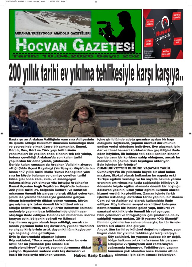 Geride kalan ramazan da Ardahan Valisinin ziyaret ettiği Çıldır ilçesi Kayabeyi (Yerliçayıs) Köyü’nde bulunan 117 yıllık tarihi Molla Yunus Konağı’nın yanı sıra bu köyde bulunan ve camiye çevrilen tarihi kilise gibi onca kale, kule, ve sinengogun bakımsızlıkta yok olmaya yüz tuttuğu Ardahan’ın Damal ilçesine bağlı Seyitören Köyü’nde bulunan 200 yıllık tarihi ev, bölgenin kültürel ve sanatsal mirasının önemli bir parçası olarak dikkat çekerken, şimdi ise yıkılma tehlikesiyle gündeme geliyor.