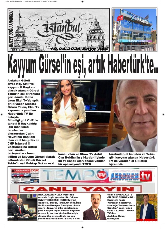 Bilindiği gibi CHP İstanbul İl Başkanlığı için mahkeme tarafından oluşturulan Çağrı Heyetinin Başkanı olan ve 5 bin polis ile CHP İstanbul İl Başkanlığına gittiği ileri sürülen tartışmalara konu edilen ve kayyum Gürsel olarak adlandırılan Göleli Gürsel Tekin’in eşi Mehtap Özkan eski kanalı olan ve Show TV dahil Can Holding’in şirketleri içinde bir tv kanalı olan ancak yapılan bir operasyonla TMFS tarafından el konulan ve Tekin gibi kayyum atanan Habertürk TV ile yeniden el sıkıştığı öğrenildi.